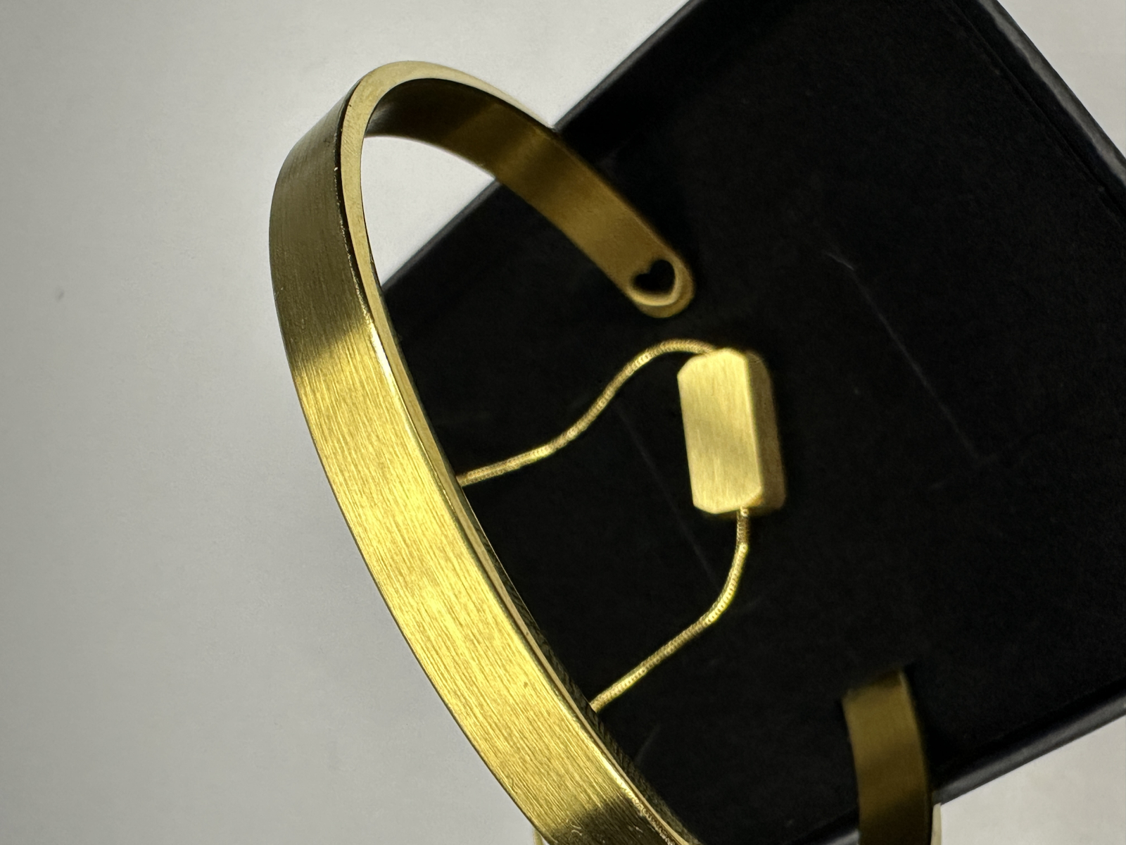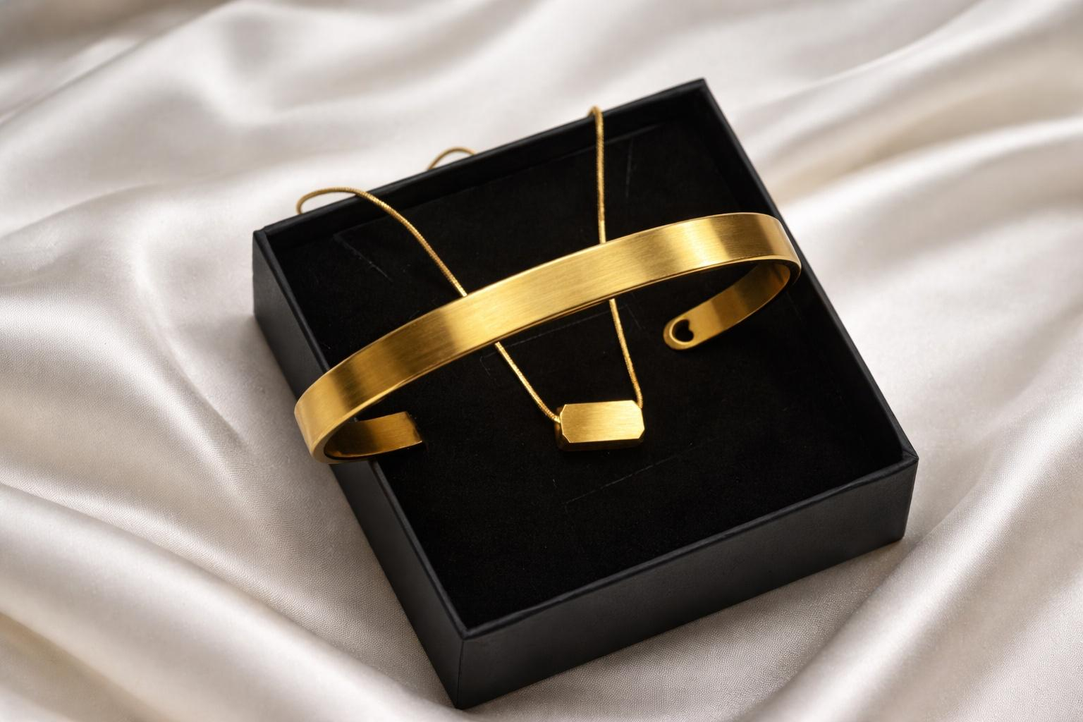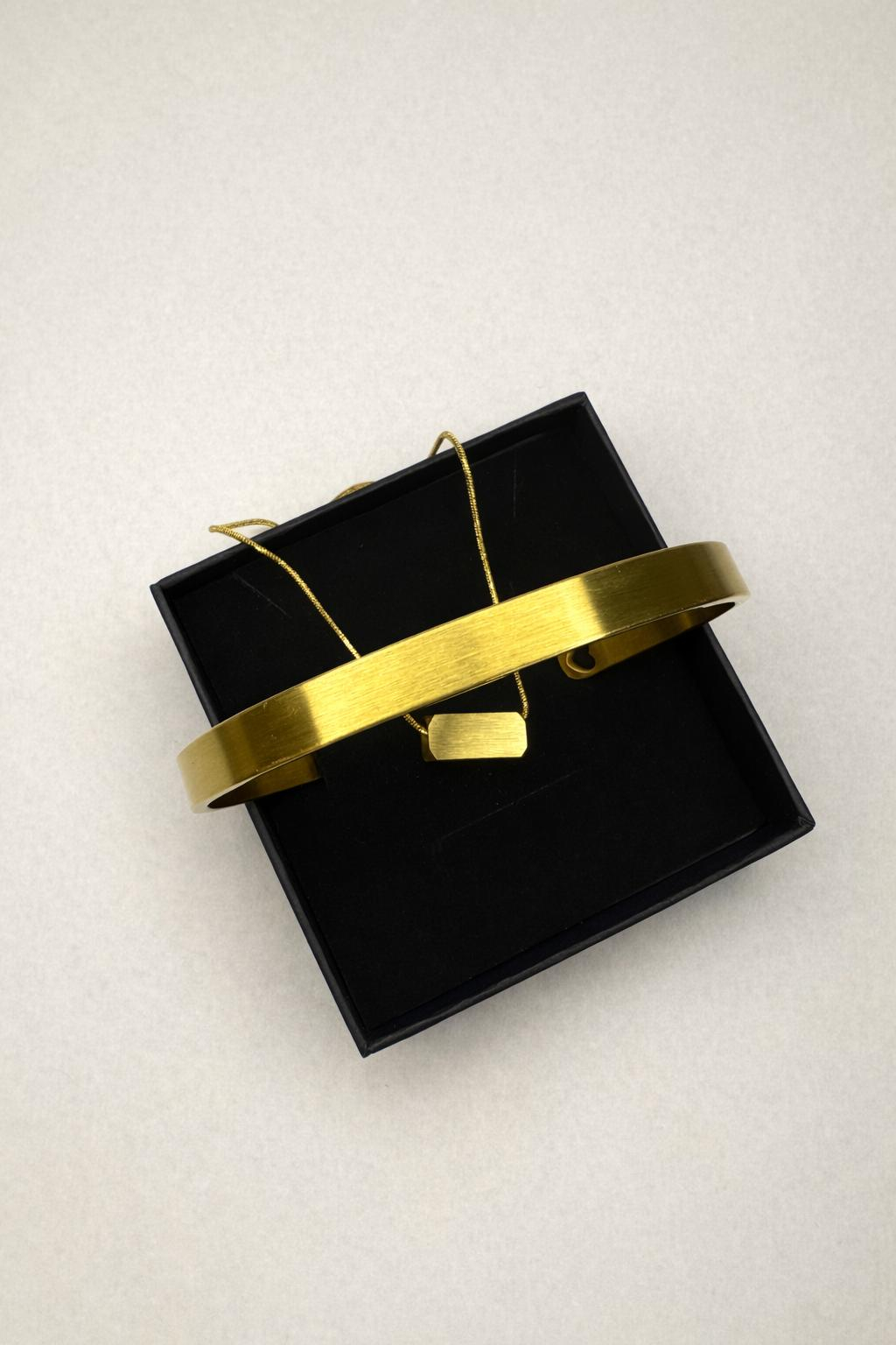 Setul de bijuterii STRONG este alegerea ideală pentru un cadou cu semnificație, creat să reziste în timp. Realizat cu textură periată și finisaj mat, setul este placat cu aur de 18K și testat pentru purtare zilnică — rezistent la uzură, apă sărată și contact frecvent.